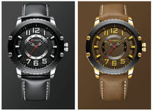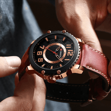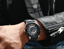 Men's Waterproof Sport Watch With Leather Belts And Large Numbers Details Unique Design Perfect Gift