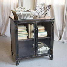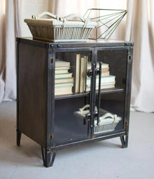 Display everything from books to dishes in this metal cabinet! Made of metal with a classic black finish, it can be used in a office or entryway!