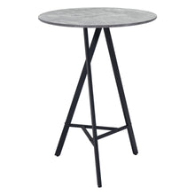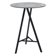 A classic round table, the Metz Bar Table fits any mid-century modern space, perfect for any space, dining, work, or open plan. The top is a durable MDF laminate top The top is a durable MDF laminate top with a black stained wood laminate and steel legs powder coated in black.