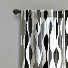 This Mid Century Geo Light Filtering Window Curtain Panel Set is made with a three-inch back tab rod pocket, meaning you have three options to hang these panels. You can slide the curtain rod through the rod pocket, hang the panels from the rod with clip rings, or hang the panels with the back tabs.