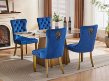 Mid-Century Modern Tufted Solid Wood Velvet Dining Chair with Lion Head Pull Ring