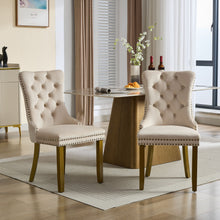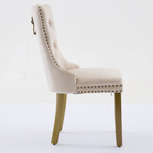 Mid-Century Modern Tufted Velvet Dining Chairs with Lion Head Pull Ring and Nailhead Trim