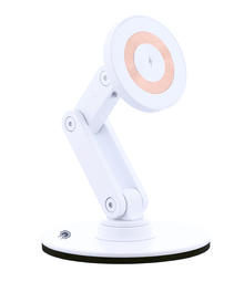 Minimalistic White ClikDock Wireless MagSafe Cellphone Charging Stand for iPhone and Android.