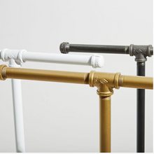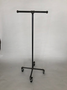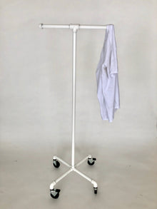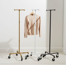 Mobile clothing stand come in 3 different colors(gunmetal, gold, or white). It stands about 56" tall from the floor. The wheels are 3" tall have two of them have brakes. Great for displaying clothes or storing some clothes in your home.