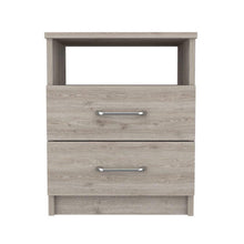 - Modern 2-Drawer Nightstand with Open Shelf in Beige Wood Finish