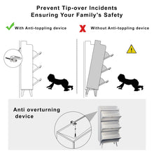 Anti-tipping Devices: Solid construction shoe cabinet: Crafted from sturdy MDF, this shoe organizer is as solid as they come. And with anti-tip kits for added safety and adjustable feet for uneven floors, it's a piece you can rely on, even with little loved ones around.