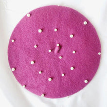 Modern Art Wool Baby Hat with Pearls Cat Candy Color Retro Baby Girl Cap Kids Beret Hats for Girls