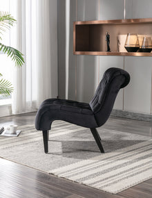 Modern Velvet Armless Accent Chair — Upholstered Button Fabric with Wooden Legs