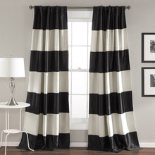 Our Montego Stripe Light Filtering Window Curtain Set features a modern design of thick stripes printed on light blocking fabric.