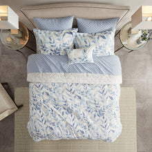 The Madison Park Essentials Sofia Reversible Comforter Set with Sheet Set offers a beautiful update for your entire bed. A botanical print, in soft blue hues, adorns the face and the reverse of comforter, creating two distinct and stylish looks. The matching reversible shams (1 in Twin Sizes) coordinate perfectly with the comforter, while an oblong decorative pillow adds the finishing touch. Also included is a patterned blue sheet set that completes this reversible bedding set. Bringing the best in health and wellness, this bedding set also features an anti-microbial treatment that provides built-in freshness protection, reducing the growth of odor causing bacteria and keeps fabric lasting longer. This bedding set is also OEKO-TEX certified, meaning it does not contain any harmful substances or chemicals, ensuring quality comfort and wellness. This bedding set may come in rolled or compressed packing and will need to be fluffed up. Use a steam iron to help remove wrinkles easier.