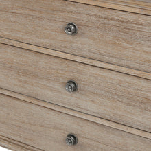 French inspired 6 drawer dresser with a wire brushed natural finish with grey highlights. Leg assembly required.
