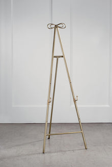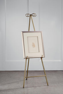 The floor-standing " Bow Easel" is simple with a decorative bow accent. It is perfect for displaying pictures, artwork, posters, and more. The set of brackets are adjustable to 3 different heights on the frame. This easel comes with 2 sets of brackets allowing for multiple photo display.
