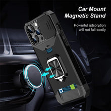 Multifunctional Card Holder Heavy Duty Protective iPhone Case For iPhone 14 13 12 11 Pro Max Slide Camera Kickstand Card Holder Slot Wallet Protective With Ring Stand Cover Magnetic Strong Phone Case