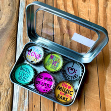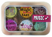 Six-pack set of Music themed magnets, made in the USA from recycled bottle caps. Our magnetic expressions make fabulous and unique gifts and can be used in the kitchen, office or on any magnetic surface.