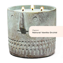 A handmade, hand-painted cement vessel and it's happy to see you. This timeless décor will live on long after the candle has finished burning either as a planter for your favorite flora, or a practical container for your precious goods.