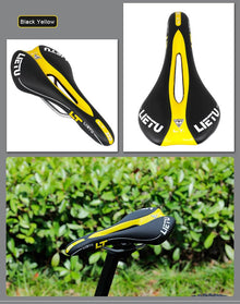 New Bicycle Saddle Ergonomic Road Bike Perforated Seat Foam Cushioned PU Leather Texture Steel Rail Cycle Accessories Mountain Bike Seat Comfortable Memory Foam Bicycle Seats For Mens