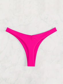 New Bikini Solid Color Cheeky Ruched Thong Bikini Bottoms for Women – High Stretch Polyamide Swim Briefs with Flattering Fit – Casual Swimwear Essential for Beach Pool and Summer Vacation