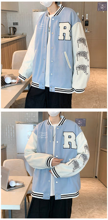 New Elegance Spring Autumn Coat Baseball Bomber Jacket Loose Letter R Men Women Couples Tops Plus Size Jackets Streetwear