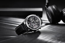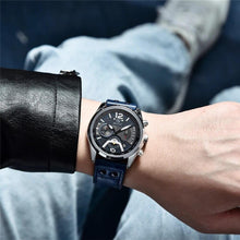 - ELEGANT DESIGN: Offers a range of classic designer wrist watches specially crafted for men. The watch comes with 100% strong glass and a blue dial.Equipped with chronograph function. The high quality leather strap with width 2.4cm, Length 24cm give the watch a stylish look.