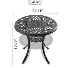 Ø30.71-inch Cast Aluminum Patio Dining Table With Black Frame and Umbrella Hole