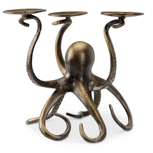 Octopus Pillar Trio Candleholder   Details: Dimensions: 5.5"H x 6"W x 2.5"D  Weights: 4.5 lbs Materials: Cast Iron *Holds 3.5"D Candle *Candles not included.