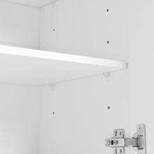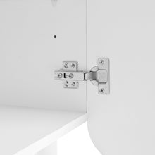 The cabinet on the right includes two shelves that can be adjusted to suit your storage needs, allowing for personalization of the space. You can alter the shelf height to accommodate taller shoes or create additional space for smaller items, making the cabinet both flexible and versatile.