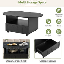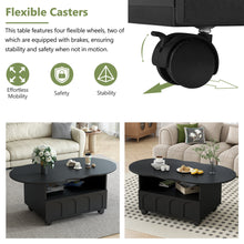 ON-TRANS flexible cream style coffee table with 2 brake wheels, drawers, large storage space,black, 39.37 '' x 23.6 ''