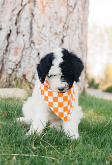 Orange and White Polka Dots with Orange and White Checkerboard Dog Bandana