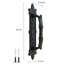 Decorative cast iron door pull featuring an ornate backplate and textured antique finish. Solid and durable, it adds vintage farmhouse character to doors, cabinets, and furniture. Includes mounting screws for...