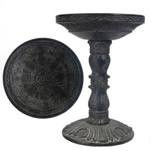 - Outdoor Garden Fiberglass Bird Bath in Black Charcoal Stone Finish