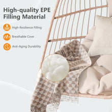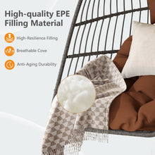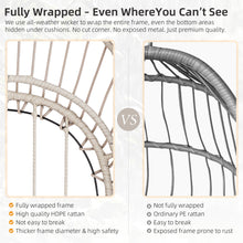 Designed for indoor and outdoor relaxation, this hanging egg chair combines a sculptural, hand-woven rattan look with weather-resistant HDPE for lasting performance on a patio, deck, garden, sunroom, or poolside space.