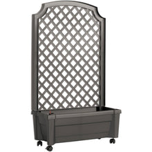 Outdoor Self-Watering Garden Planter with Trellis and Wheels in Grey Plastic