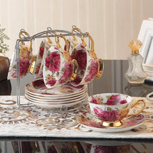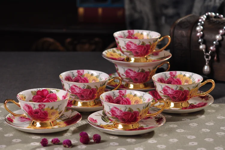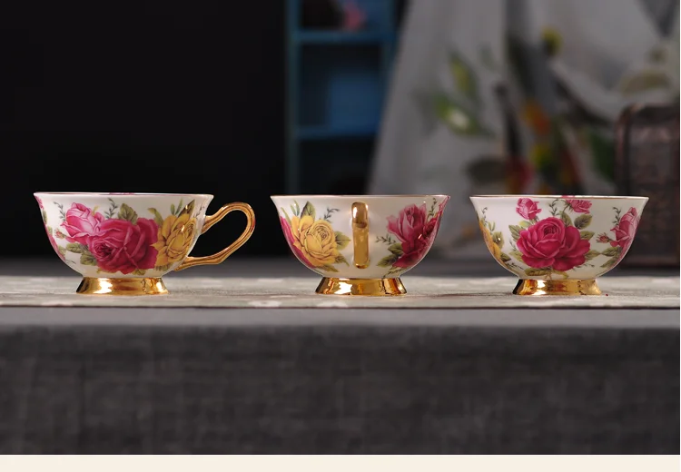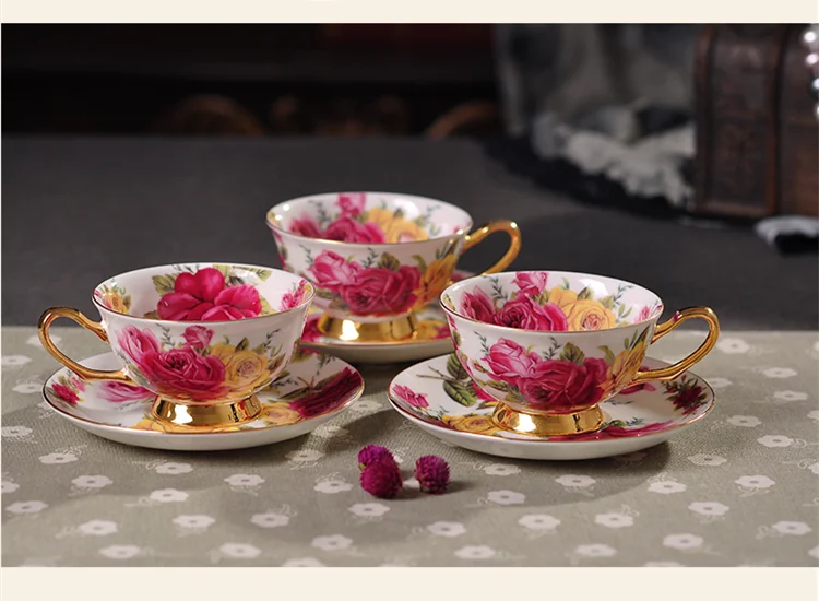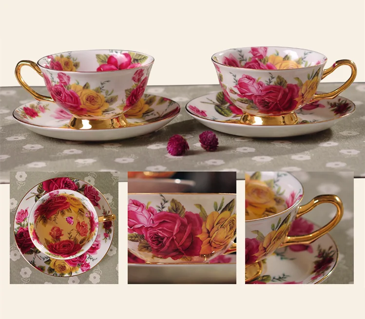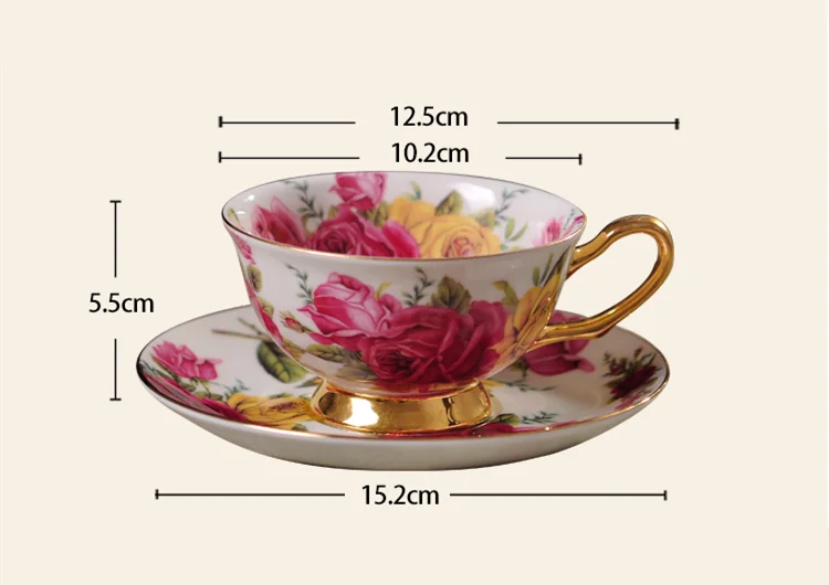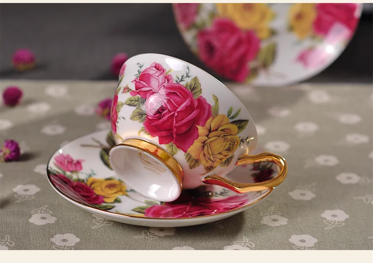 Pastoral Rose Bone China Tea Cup Saucer Spoon Set 200ml Europe Advanced Porcelain Coffee Cup Cafe Ceramic Floral Teacup Dropship