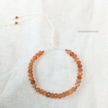 Radiance with grace. This tasbih bracelet is handcrafted with faceted Peach Moonstone rondelle beads, each 4x6mm, and strung on a strong, fray-resistant cord. Known for its warm blush tones and subtle shimmer, Peach Moonstone reflects light with a soft, feminine glow. The delicate faceting enhances its natural sheen, creating a luminous play of color that feels both soothing and refined. Designed for comfort and intention, each bead moves smoothly through the fingers, offering a serene tactile experience during dhikr or reflection. Finished with a sliding macramé lock braid and adjustable knots, this bracelet captures elegance, calm, and devotion in every detail.