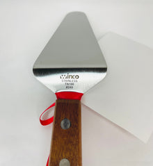 This pie server is a must for all kitchens and bakeries and is helpful for serving anything from pizza and lasagna to cake and pie. Its angled design and blunt edge make it easy to serve various foods. Perfect for slicing into your best desserts and serving them with ease.