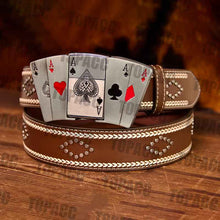 Playing Cards Illuminated Buckle - Leather Vintage Belt