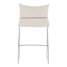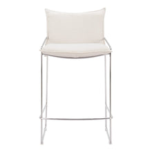 Crafted with high-quality poly linen (100% polyester), plywood and chromed steel, the Pola Counter Stool White stands out in white, embodying the best of Modern aesthetics.