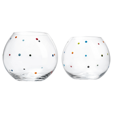 - Accentuate your home decor with these polka dot wine glasses. Made of durable, borosilicate glass, this two-pack will be your go-to for any occasion. Enjoy a chilled glass of your favorite vino with elegance! These polka dot wine glasses are the ideal way to relax and enjoy a nice drink on a hot summer day. These glasses are perfect for use during dinners, parties or other gatherings with friends. Treat your wine to a drink in these exquisite, lead-free glass polka dot wine glasses