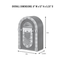 - COMPACT AND STYLISH DESIGN: This Bluetooth jukebox radio features a small, space-saving design that fits easily on any tabletop. Retro-inspired chrome details are paired with modern tech, ensuring both style and up-to-date performance.
