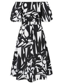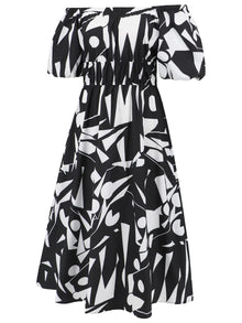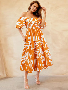 Printed Off-Shoulder Balloon Sleeve Dress