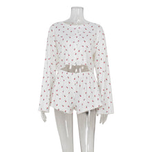 Printed round neck long sleeved cardigan with exposed waist top loose casual shorts set for women