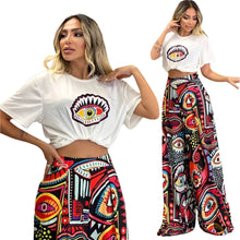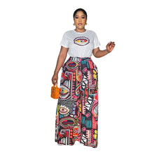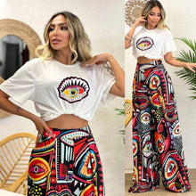 Printed Two-Piece Set Round Neck Short Sleeve Top Loose Comfortable Long Pants Wide Leg Pants Women's Clothing