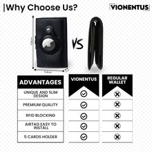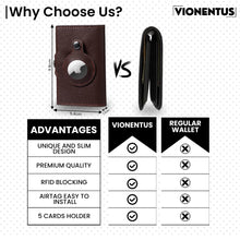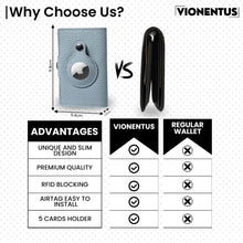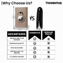 RFID Blocking Technology: For enhanced security, the Vionentus trackable wallet for men is designed with RFID blocking technology that helps protect your credit card information and prevents unauthorized payments.