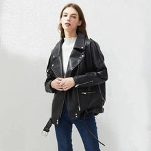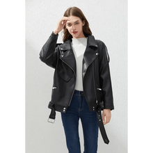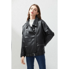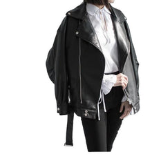 PU Faux Leather Jacket Women Loose Sashes Casual Biker Jackets Outwear Female Tops BF Style Black Leather Jacket Coat