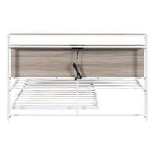 Queen Size Metal Platform Bed Frame with Trundle, USB Ports and Slat Support ,No Box Spring Needed White