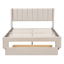 SpecificationProduct InformationProduct Name:Queen Size Storage Bed Velvet Upholstered Platform Bed with a Big Drawer - BeigeMain Color:BeigeMain Material:VelvetBed Size:QueenSize:QueenProduct DimensionsAssembled Length (in.):82.70Assembled Width (in.):65.60Assembled Height (in.):41.90Weight (lbs.):90.50Package SizeLength (in.):64.96Width (in.):22.05Height...