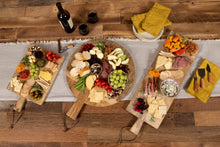 The large wooden serving tray centerpiece of your dreams has arrived with the Round Ravi Charcuterie Board in beautiful Mango Wood. You do dream of cutting boards, right? Well, we certainly do! This multi-purpose cutting board is a generous 22.5 by 18 by 1 inches, making this platter ideal for wine and cheese parties of all kinds. Made with care in India, the contrasting timber stripes on one side give a stylish, rustic flair. It’s so lovely, you’ll want to display it between uses - which is easy to do because of the leather rope on the handle for hanging. Load up the charcuterie, bread, and cheese - this tray is ready to circle the competition, indoors or out. Hope you’re ready for tons of compliments on this round wooden platter because they are rounding the bend on their way to you!