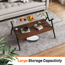 Rectangle Coffee Table with Tempered Glass top and Black Metal Legs, Modern Table for Living Room , Transparent Glass