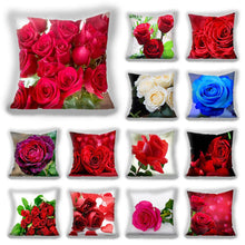 Red Flower Cushion Pillow Covers Love Pillow Covers Decorative Linen Square Couple Cushion Cases Home Decor Polyester Throw Pillow Case Super Soft Short Plush Cushion Cover Festive Home Decorative Cushions 45X45CM