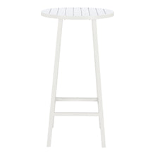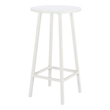The Ren Bar Table White is constructed from powdercoated aluminum for outdoor use. This table works well in any outdoor environment, residential or hospitality. It is modern in design and with a very functional shape, and also great as event furniture.